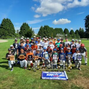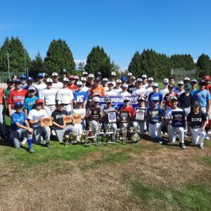 U10 – U13 Bullpen Travel Team players, and prospective players displaying trophies and banners won over the years.